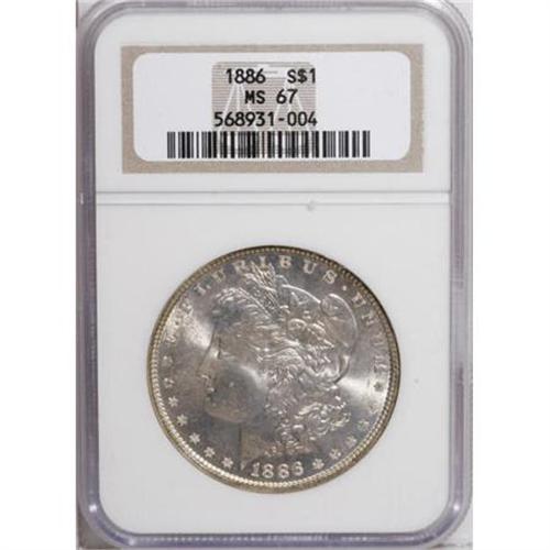 1886 S$1 MS 67 NGC. A spectacular dollar with nearly m