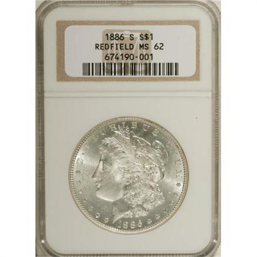 1886-S $1 MS62 NGC. Ex: Redfield. NGC Census: (438/142