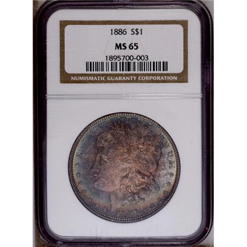 1886 S$1 MS64 NGC, concentric bands of peach, ruby, an 1886[img border='0' src='http://www.heritagec