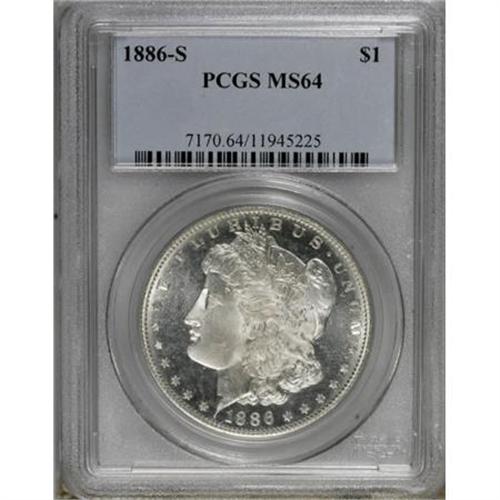 <B>1886-S $1 MS64 PCGS.</B></I> Both sides offer flashy, though not fully reflective fields that host boldly struck, modestly frosted devices. Whispers of scattered haze grace the pleasingly preserved fields. Overall, an attractive S-mint.<BR><BR><B>Coin Engraver:</B> George T. Morgan<BR><BR><b>Shipping:</b> Coins & Currency (<a target="_blank" href="http://www.heritageauctions.com/common/shipping.php">view shipping information</a>)