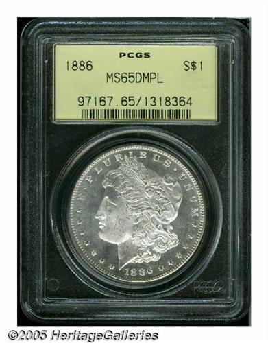 <B>1886<S$1> MS65 Deep Mirror Prooflike PCGS.</B></I> A prominently mirrored Gem, nicely struck and carefully preserved. A common date overall, but scarce as a DMPL in this lofty grade. Encapsulated in a prior generation holder.