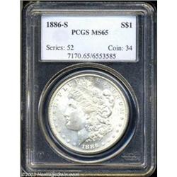<table><tr><td><TABLE cellSpacing=0 cellPadding=0 width="100%" bgColor=#000000 border=0><TBODY> <TR><TD width="100%"><TABLE cellSpacing=1 cellPadding=3 width="100%" border=0><TBODY><TR><TD width="100%" bgColor=#79735c><FONT face=arial color=#ffffff size=3><B>Description</B> </FONT></TD></TR><TR><TD width="100%" bgColor=#ffffff><FONT face=arial size=2><B>1886-S $1 MS65 PCGS.</B></I> Untoned with a bright, satiny sheen on the obverse and mildly prooflike fields on the reverse. Unlike most Mint State survivors (often from the Redfield holdings) of this low mintage San Francisco issue, abrasions are truly minimal and well scattered.<BR><I>From the Holman Family Collection.</B></I> </FONT></TD></TR></TBODY></TABLE></TD></TR></TBODY></TABLE><BR><A name=PricesRealized></A><TABLE cellSpacing=0 cellPadding=0 width="100%" bgColor=#000000 border=0><TBODY><TR><TD width="100%"><TABLE cellSpacing=1 cellPadding=3 width="100%" border=0><TBODY><TR><TD width="100%" bgColor=#79735c><A name=PR><FONT face=arial color=#ffffff size=3><B>Previous Prices from Heritage Auctions</B> </FONT></A></TD></TR><TR><TD bgColor=#f6f6ed><TABLE cellSpacing=0 cellPadding=0 width="100%" border=1><TBODY><TR><TD align=middle width="33%"><B>Date</B></TD><TD align=middle width="33%"><B>Service</B></TD><TD align=middle width="33%"><B>Price</B></TD></TR><TR bgColor=whitesmoke><TD width="33%"><B>09/09/2003</B></TD><TD width="33%">PCGS</TD><TD width="33%">$2,186.15</TD></TR><TR bgColor=whitesmoke><TD width="33%"><B>12/24/2002</B></TD><TD width="33%">PCGS</TD><TD width="33%">$1,955.00</TD></TR><TR bgColor=whitesmoke><TD width="33%"><B>06/25/2002</B></TD><TD width="33%">PCGS</TD><TD width="33%">$2,415.00</TD></TR><TR bgColor=whitesmoke><TD width="33%"><B>09/20/2003</B></TD><TD width="33%">PCGS</TD><TD width="33%">$2,530.00</TD></TR><TR bgColor=whitesmoke><TD width="33%"><B>07/29/2003</B></TD><TD width="33%">PCGS</TD><TD width="33%">$2,300.00</TD></TR><TR bgColor=whitesmoke><TD width="33%"><B>03/01/2003</B></TD><TD width="33%">PCGS</TD><TD width="33%">$2,127.50</TD></TR><TR bgColor=whitesmoke><TD width="33%"><B>01/11/2003</B></TD><TD width="33%">PCGS</TD><TD width="33%">$2,070.00</TD></TR><TR bgColor=whitesmoke><TD width="33%"><B>09/28/2002</B></TD><TD width="33%">PCGS</TD><TD width="33%">$2,070.00</TD></TR><TR bgColor=whitesmoke><TD width="33%"><B>07/30/2002</B></TD><TD width="33%">PCGS</TD><TD width="33%">$2,472.50</TD></TR><TR bgColor=whitesmoke><TD width="33%"><B>04/27/2002</B></TD><TD width="33%">PCGS</TD><TD width="33%">$2,213.75</TD></TR><TR bgColor=whitesmoke><TD width="33%"><B>04/27/2002</B></TD><TD width="33%">PCGS</TD><TD width="33%">$2,185.00</TD></TR><TR bgColor=whitesmoke><TD width="33%"><B>11/15/2001</B></TD><TD width="33%">PCGS</TD><TD width="33%">$1,782.50</TD></TR><TR bgColor=whitesmoke><TD width="33%"><B>10/07/2001</B></TD><TD width="33%">NGC</TD><TD width="33%">$1,897.50</TD></TR><TR bgColor=whitesmoke><TD width="33%"><B>10/06/2001</B></TD><TD width="33%">PCGS</TD><TD width="33%">$1,782.50</TD></TR><TR bgColor=whitesmoke><TD width="33%"><B>01/05/2001</B></TD><TD width="33%">PCGS</TD><TD width="33%">$1,955.00</TD></TR><TR bgColor=whitesmoke><TD width="33%"><B>01/05/2001</B></TD><TD width="33%">PCGS</TD><TD width="33%">$3,335.00</TD></TR><TR bgColor=whitesmoke><TD width="33%"><B>05/05/2000</B></TD><TD width="33%">PCGS</TD><TD width="33%">$2,127.50</TD></TR><TR bgColor=whitesmoke><TD width="33%"><B>03/02/2000</B></TD><TD width="33%">PCGS</TD><TD width="33%">$2,156.25</TD></TR><TR bgColor=whitesmoke><TD width="33%"><B>09/25/1999</B></TD><TD width="33%">NGC</TD><TD width="33%">$1,955.00</TD></TR><TR bgColor=whitesmoke><TD width="33%"><B>06/04/1999</B></TD><TD width="33%">PCGS</TD><TD width="33%">$3,220.00</TD></TR><TR bgColor=whitesmoke><TD width="33%"><B>08/17/1996</B></TD><TD width="33%">PCGS</TD><TD width="33%">$1,512.50</TD></TR><TR bgColor=whitesmoke><TD width="33%"><B>06/01/1996</B></TD><TD width="33%">PCGS</TD><TD width="33%">$1,980.00</TD></TR><TR bgColor=whitesmoke><TD width="33%"><B>08/14/1995</B></TD><TD width="33%">PCGS</TD><TD width="33%">$1,705.00</TD></TR><TR bgColor=whitesmoke><TD width="33%"><B>07/31/1993</B></TD><TD width="33%">PCGS</TD><TD width="33%">$1,925.00</TD></TR><TR bgColor=whitesmoke><TD width="33%"><B>01/01/2001</B></TD><TD width="33%">PCGS</TD><TD width="33%">$2,070.00</TD></TR><TR bgColor=whitesmoke><TD width="33%"><B>02/01/2000</B></TD><TD width="33%">NGC</TD><TD width="33%">$1,725.00</TD></TR><TR bgColor=whitesmoke><TD width="33%"><B>08/01/1999</B></TD><TD width="33%">PCGS</TD><TD width="33%">$2,070.00</TD></TR><TR bgColor=whitesmoke><TD width="33%"><B>05/01/1999</B></TD><TD width="33%">ANACS</TD><TD width="33%">$3,960.00</TD></TR></TBODY></TABLE></TD></TR><TR><TD bgColor=#ffffff><FONT face=arial size=1 ?>PLEASE NOTE: All prices realized reflect the final hammer price PLUS the buyer's premium in auctions that charge a buyer's premium. Each item has a notation at the top of the listing indicating whether that lot included a buyer's premium. Example: A item that sells with a final hammer price of $100 and a 20% buyer's premium will display with a price realized of $120. All information listed is intended to be as accurate as possible, but errors are possible. Please use this guide carefully and inform us of any inaccuracies. </FONT></TD></TR></TBODY></TABLE></TD></TR></TBODY></TABLE><BR><TABLE cellSpacing=0 cellPadding=0 width="100%" bgColor=#000000 border=0><TBODY><TR><TD width="100%"><TABLE cellSpacing=1 cellPadding=3 width="100%" border=0><TBODY><TR><TD width="100%" bgColor=#79735c colSpan=6><FONT face=arial color=#ffffff size=3><B>Price Guide*</B> </FONT></TD></TR><TR bgColor=#f6f6ed><TD align=middle><B>Grade</B> </TD><TD align=middle><B>Coin World<BR>(Trends)</B> </TD><TD align=middle><B>Numismedia<BR>Retail</B> </TD><TD align=middle><B>Numismedia<BR>Wholesale</B> </TD><TD align=middle><B>Coin<BR>Universe</B> </TD><TD align=middle><B>Heritage<BR>Value Index</B> </TD></TR><TR bgColor=#fff