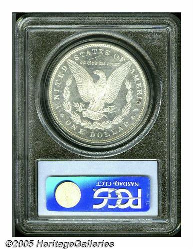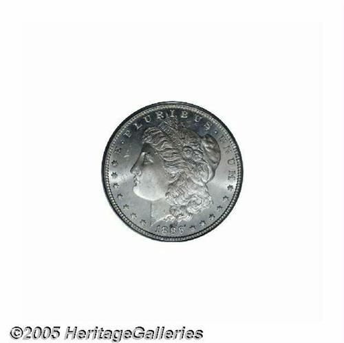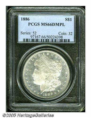 <B>1886<S$1> MS66 Deep Mirror Prooflike PCGS.</B></I> The mirrored fields offer a pleasing contrast with the mildly frosted motifs. The design elements are well struck, except for traces of weakness on the hair above Liberty's ear, and the surfaces are nearly untoned, save for wisps of light tan color on portions of the central devices. A couple of minor luster grazes on each side are not in the least bothersome. In this outstanding condition, the common date status of the 1886 Dollar can be tossed out the window. Population: 20 in 66, 0 finer (6/05).