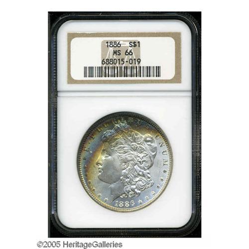 1886 S$1 MS66 NGC. Well preserved surfaces exhibit 1886[S$1] MS66 NGC.