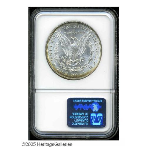 <B>1886<S$1> MS66 NGC.</B></I> Well preserved surfaces exhibit arcs of powder-blue, gold, rose, and orange color along the left and upper obverse border. Exactingly struck, and thoroughly lustrous.
