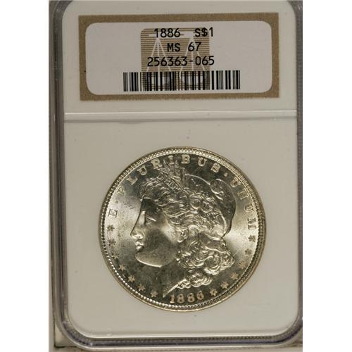 1886 S$1 MS67 NGC. This essentially brilliant Superb G
