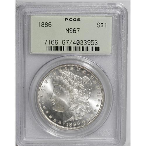 1886 S$1 MS67 PCGS. A brilliant Superb Gem, intricatel