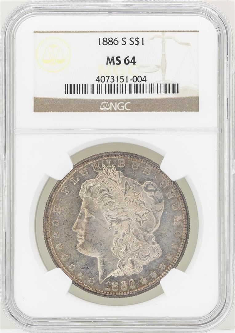 One 1886-S $1 Morgan Silver Dollar Coin NGC MS64. NGC Certified.