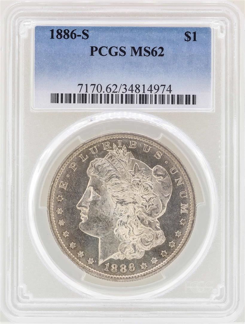 One 1886-S $1 Morgan Silver Dollar Coin PCGS MS62. PCGS Graded.
