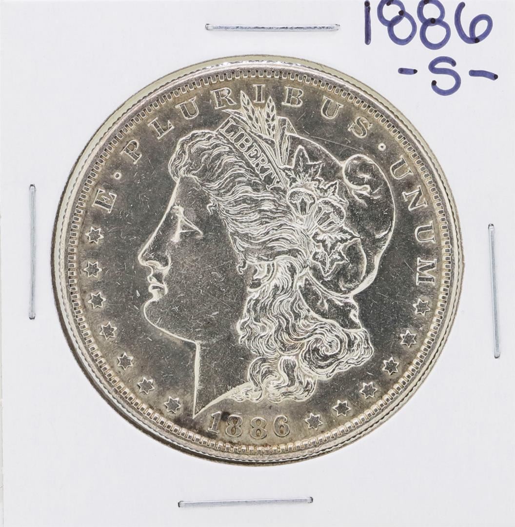 One 1886-S $1 Morgan Silver Dollar Coin.