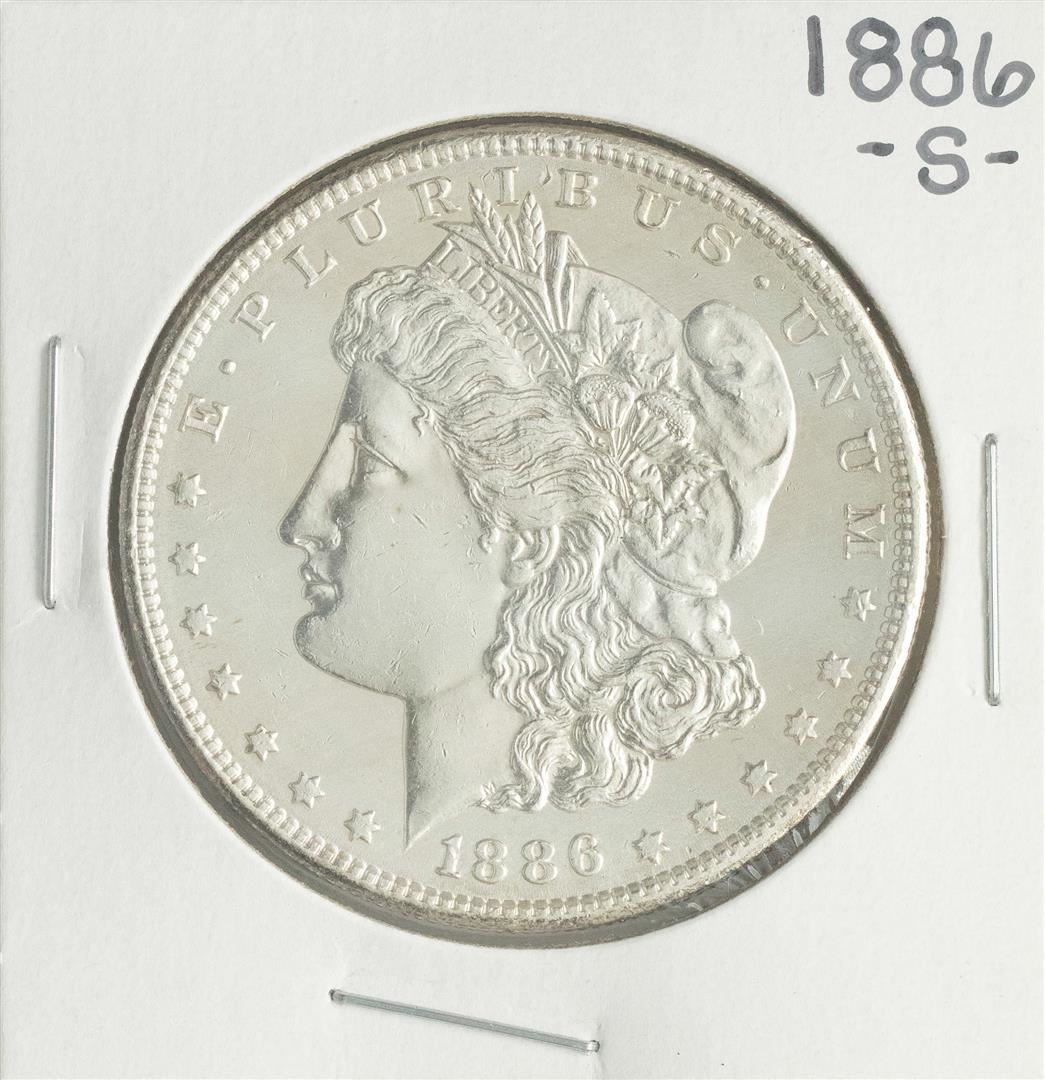 One 1886-S $1 Morgan Silver Dollar Coin.