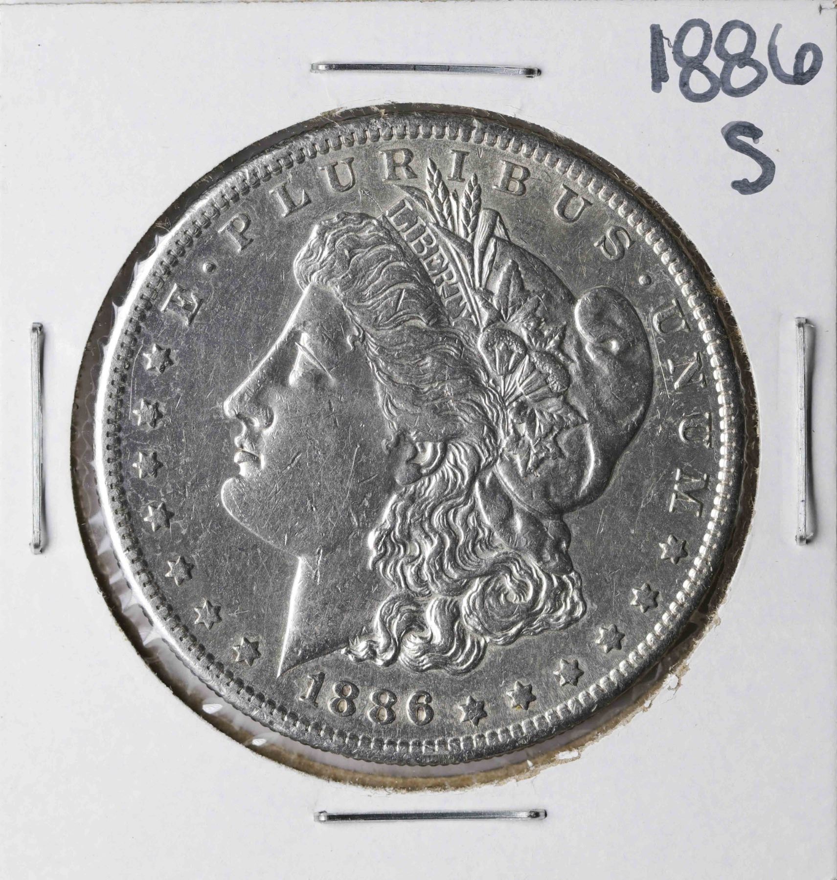 One 1886-S $1 Morgan Silver Dollar Coin.
