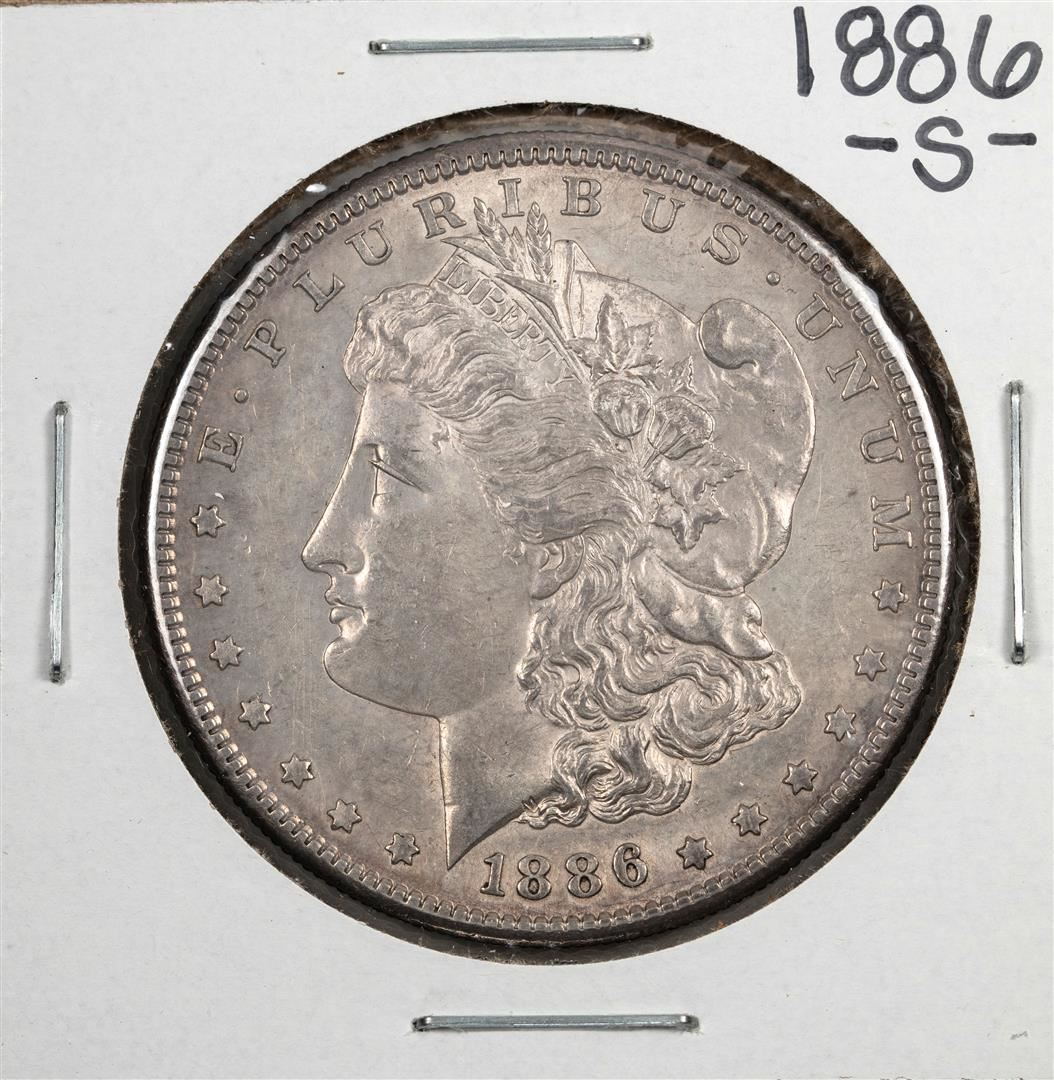 One 1886-S $1 Morgan Silver Dollar Coin.