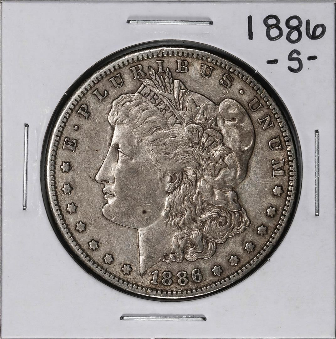 One 1886-S $1 Morgan Silver Dollar Coin.