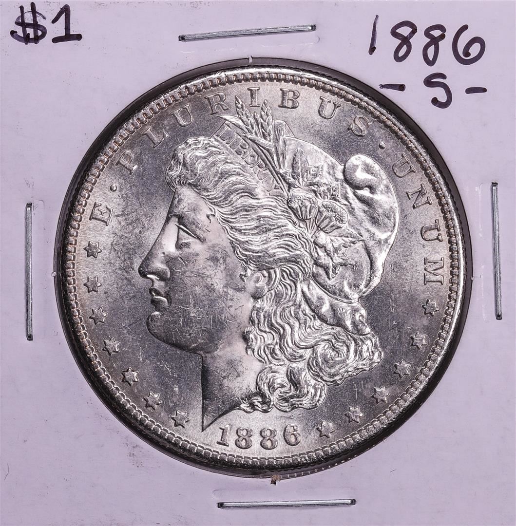 One 1886-S $1 Morgan Silver Dollar Coin.