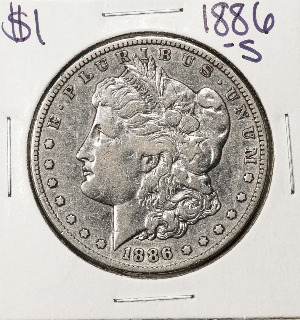 One 1886-S $1 Morgan Silver Dollar Coin.