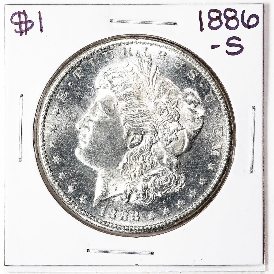 One 1886-S $1 Morgan Silver Dollar Coin.