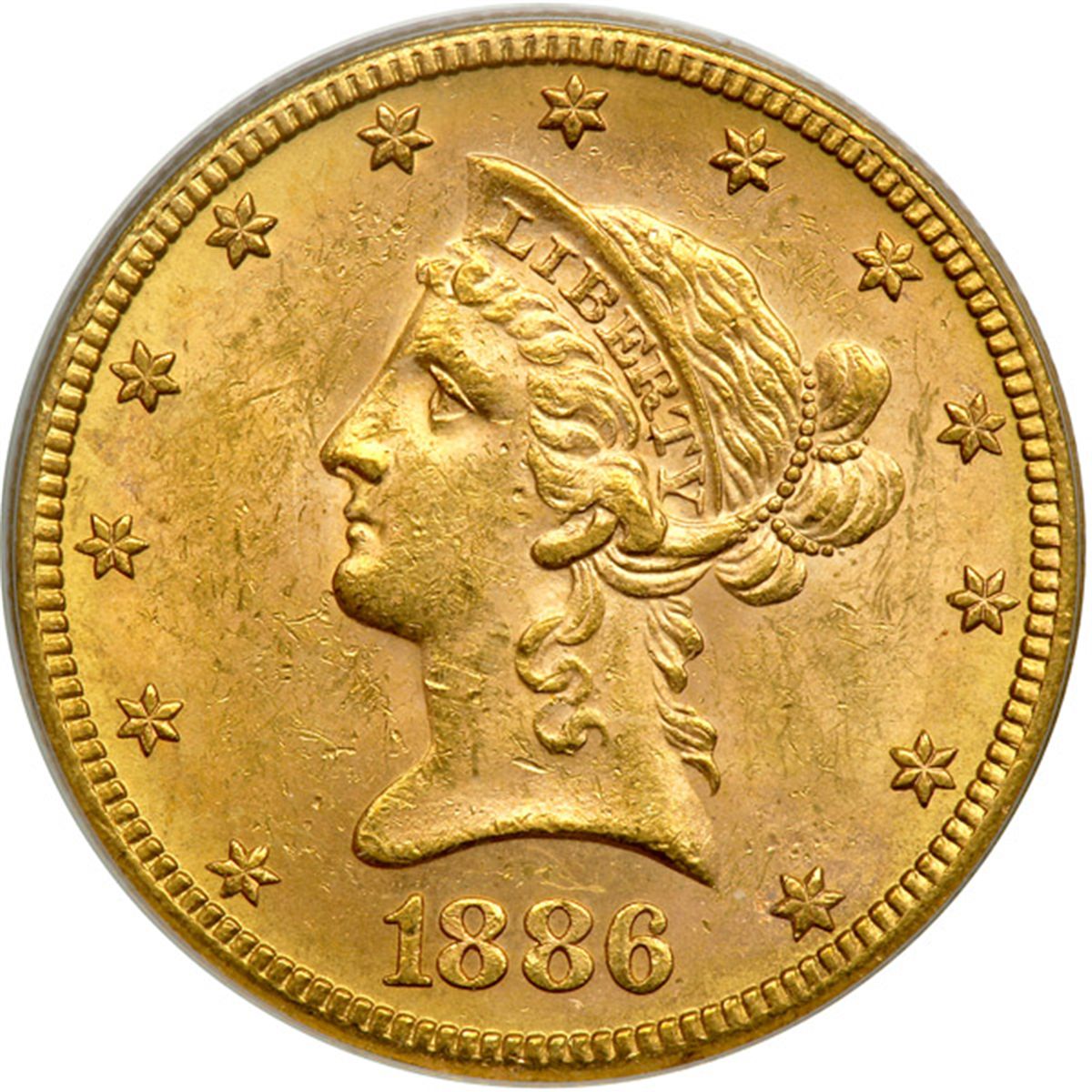 1886-S $10 Liberty. PCGS graded MS-62. Lightly toned (PCGS # 8709) .