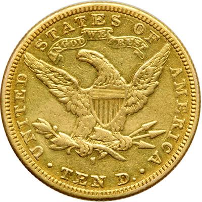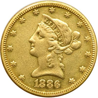 1886-S $10 Liberty. Sharpness of Very Fine. Worn as jewelry.