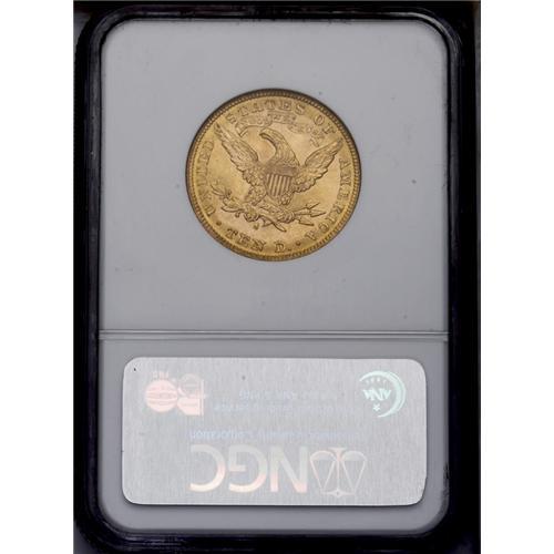 <B>1886-S<$10> MS63 NGC.</B></I> Slightly reflective surfaces exhibit several tiny abrasions, mostly on the obverse, but none that are singularly significant. A pleasing example with hints of pink color over yellow-gold luster. Census: 154 in 63, 8 finer (3/06). <BR><BR><B>Important notice:</B> Heritage usually auctions material at the rate of 200-250 lots per hour. On some occasions eBay Live bid software or the Internet may not be able to keep up with the pace of the auction. We recommend placing a realistic absentee bid now as insurance to avoid disappointment. Occasionally the auctioneer may eliminate or reject an eBay Live bid, and the auctioneer may also reopen a lot after the close of the eBay live bidding (usually because we missed an audience bid), and may reject your bid even if it shows you as the winning bidder. By bidding via eBay Live, you agree that Heritage may award the lot to another bidder at its sole discretion under the circumstances described above or any other reasonable circumstances. Since eBay bids are not shown to us until we open the lot on the floor, we treat those bids just like floor bids. In most cases the floor responds before the eBay bid is presented to us, due to Internet lag time, so for consistency we have made it a policy that floor bids are always considered first over tie eBay live bids. Also please note that all Heritage lots purchased through eBay Live carry a 20% Buyer's Premium. Please make sure you read the Terms and Conditions before you bid. This lot is being auctioned in conjunction with a live floor auction by Heritage Galleries & Auctioneers. All final auction and invoice information will be supplied by Heritage Galleries & Auctioneers, and all other information should be considered preliminary. Lot:4004 <BR><BR><B>Winning Notification and Billing:</B> After the FINAL session in this auction is complete, Heritage will send e-mail and snail mail invoices. This process normally takes several days. All final auction and invoice information will be supplied by Heritage Galleries & Auctioneers, and all other information should be considered preliminary. <BR><BR>This auction will be conducted on a live auction floor and over the Internet through eBay Live. If you choose to place an absentee bid, please take a moment to <font color='#0000ff'><u><a href='http://pages.ebay.com/liveauctions/help/before/laabsentee.html'>learn how eBay Live absentee bidding works</a></u></font><font color='#000000'>