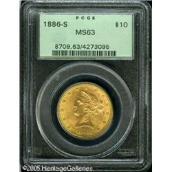 <B>1886-S $10 MS63 PCGS.</B></I> The details are sharp and the luster bright with peach-apricot patina and a few light contact marks. Lot:8780