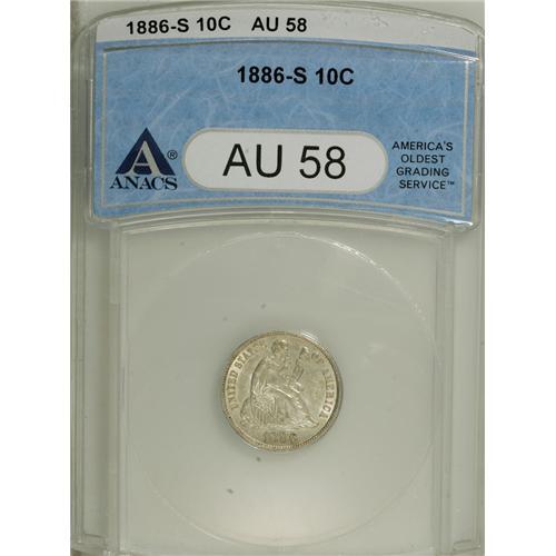 1886-S 10C AU58 ANACS. NGC Census: (2/38). PCGS Po
