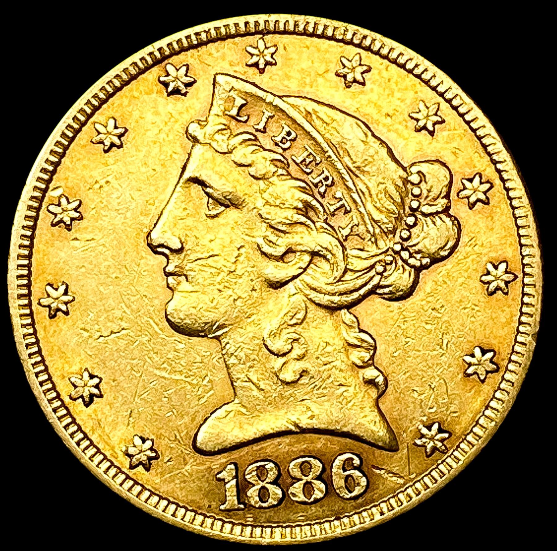 1886-S $5 Gold Half Eagle CLOSELY UNCIRCULATED