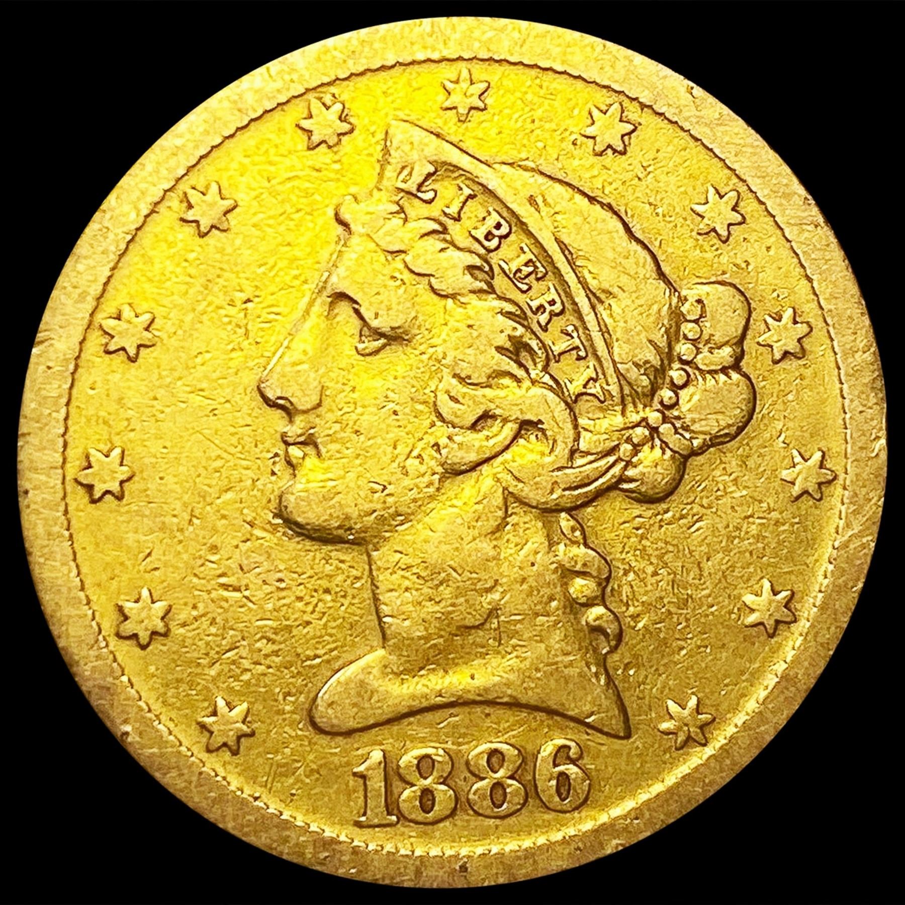 1886-S $5 Gold Half Eagle NICELY CIRCULATED
