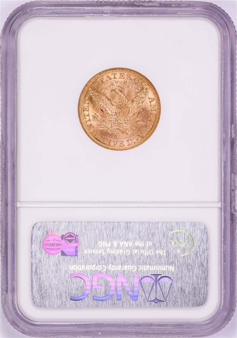 One 1886-S $5 Liberty Head Half Eagle Gold Coin NGC MS62. NGC Certified.