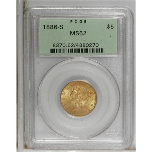 1886-S $5 MS62 PCGS. PCGS Population (997/722). NG