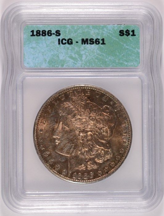 1886-S MORGAN SILVER DOLLAR, ICG MS-61 SUPER OBVERSE COLOR