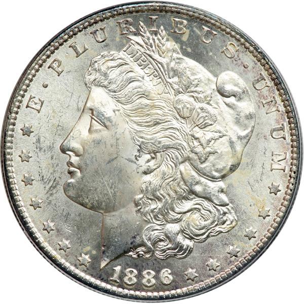 1886-S Morgan Dollar. PCGS graded MS-63. Well struck and sparkling with luster. Only 750,000 minted (PCGS # 7170) .