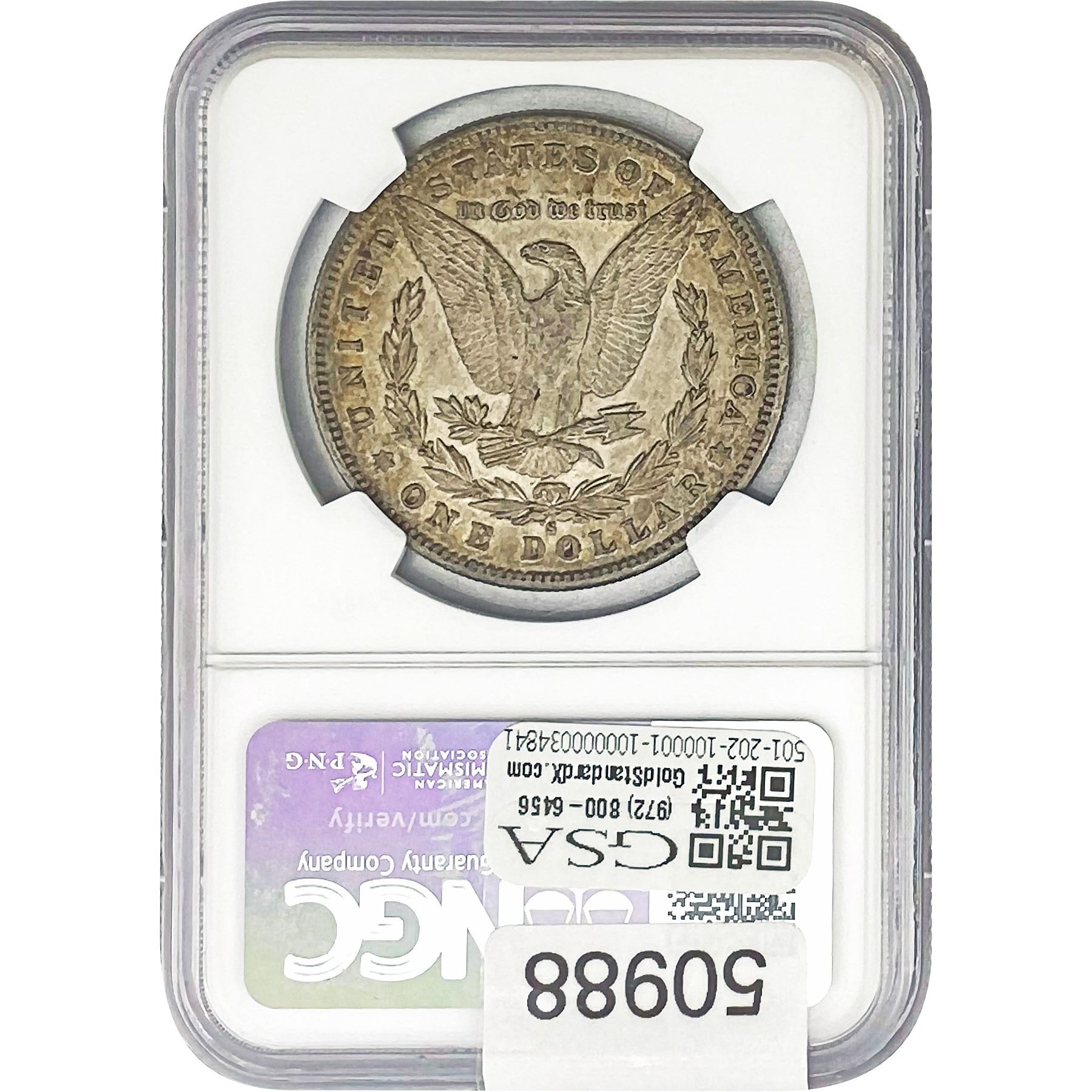 e. Coins sold referencing a third-party grading service are sold “AS IS” without any express or implied warranty, except for a guarantee by GSA that they are genuine. Removal or alteration of the holder, voids all of Bidder’s claims concerning that Product. Certain warranties may be available from the grading services and Bidders are referred to them for further details: Numismatic Guaranty Corporation (NGC), PO Box 4776, Sarasota, FL 34230, www.ngccoin.com/services/writtenguarantee.asp; Professional Coin Grading Services (PCGS), PO Box 9458, Newport Beach, CA 92658, www.pcgs.com/guarantee.html; ANACS, 6555 S. Kenton St., Ste. 303, Englewood, CO 80111; and Independent Coin Grading Co. (ICG), 7901 East Bellview, Ave., Suite 50, Englewood, CO 80111.