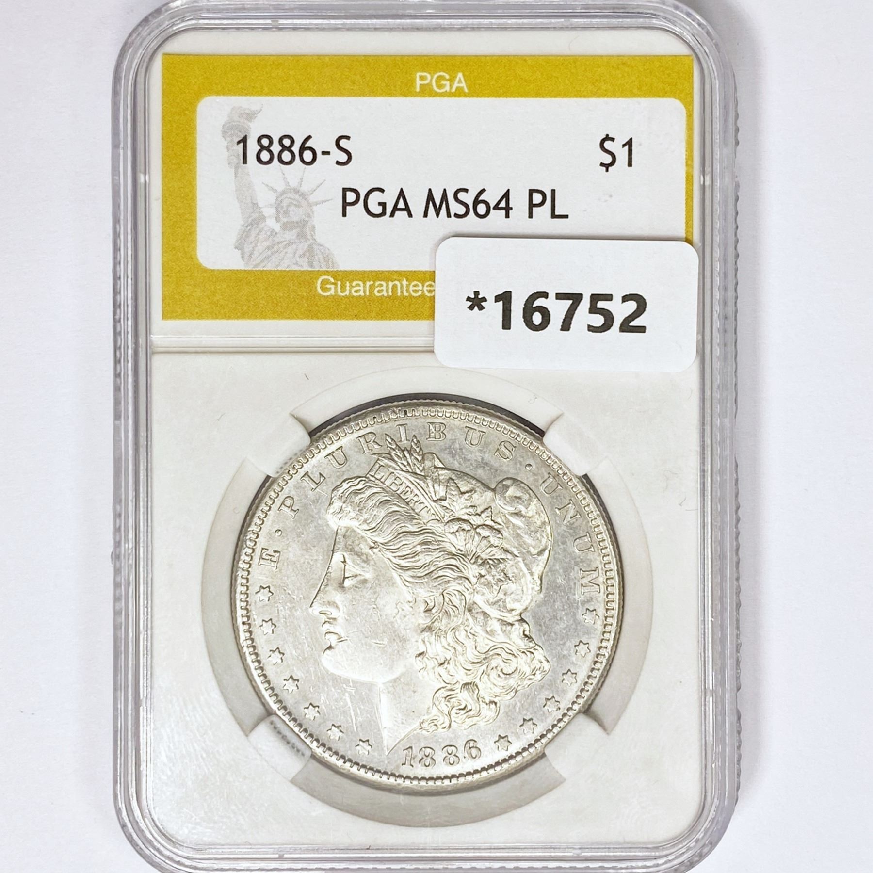 1886-S Morgan Silver Dollar PGA MS64 PL
