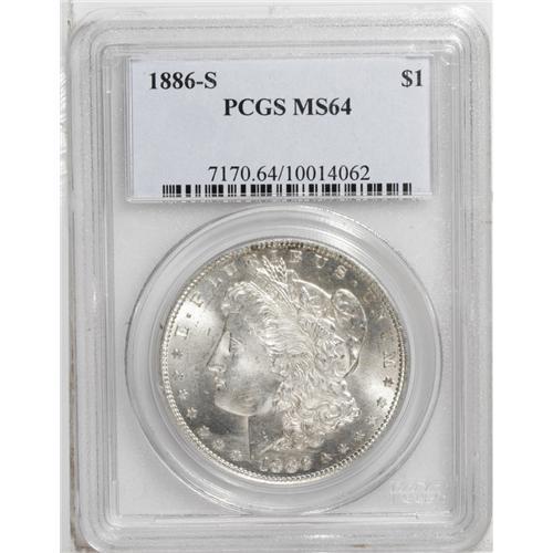 1886-S S$1 MS64 PCGS. The obverse of this near-Gem is