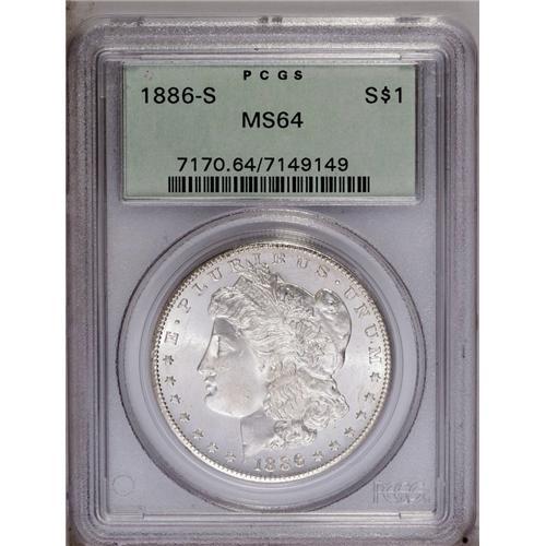 "1886-S S$1 MS64 PCGS. This is a lovely,"