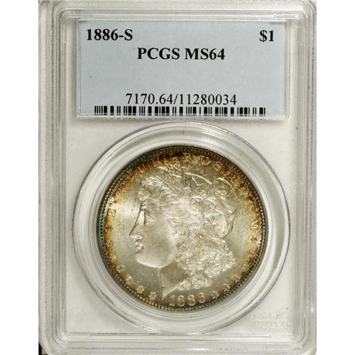 1886-S S$1 MS64 PCGS. Whispers of cobalt-blue, golden-