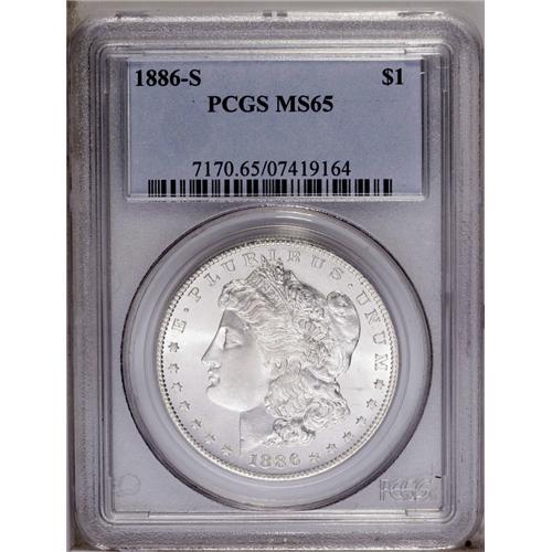 1886-S S$1 MS65 PCGS. A bold striking with vibrant, un