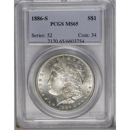 1886-S S$1 MS65 PCGS. An incredible Gem with full, glo