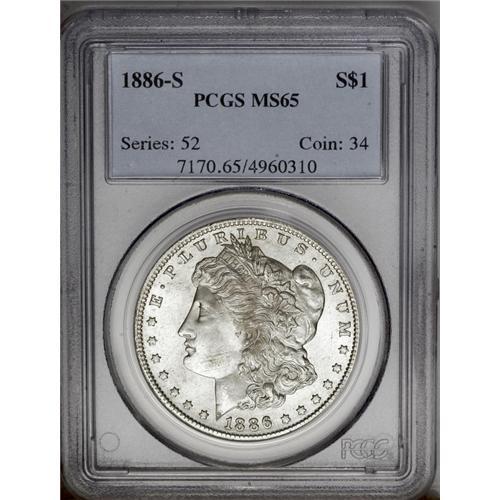 1886-S S$1 MS65 PCGS. Only 750,000 pieces were struck 1886-S[img border='0' src='http://www.heritage