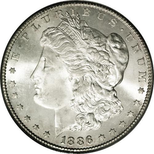 <B>1886-S<img border='0' src='http://www.heritagecoins.com/images/star.gif' width=10 height=10>$1 MS65 PCGS.</B></I> This mostly brilliant coin's obverse offers a mere hint of silver-blue and rose around the rim, while the reverse has a light overlay of lilac. This well struck, flashy Gem exhibits a minimum of visible contact marks on either side. The 1886-S is a popular low-mintage issue that is often available in bagmarked Mint State grades, but is very scarce in the state of preservation of the present example. PCGS has graded 32 finer (1/06).<BR><I>From The Leslie E. Lunsford Collection, #7 Current Finest Registry Morgan Dollars Basic Set, Circulation Strikes.</B></I>