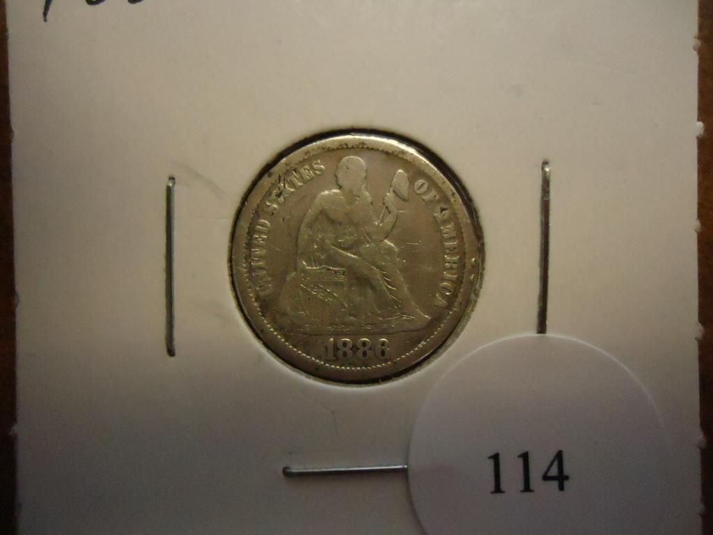 1886 SEATED LIBERTY DIME (VERY FINE)