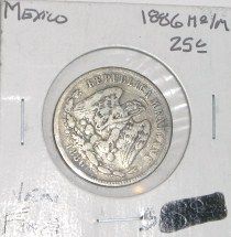 1886 SILVER MEXICO MO/M 25 CENTOVOS WORLD BOOK VALUE IS $80.00+ *RARE VERY FINE GRADE* COIN CAME OUT OF SAFE DEPOSIT BOX*!! ***Coin, Currency & All Items Listed in this auction - Grades, Conditions and Values are not Safe Deposit Coins LLC Responsibilty. Grades, Condition and Values are determined by Consigner(s) & Buyers ONLY