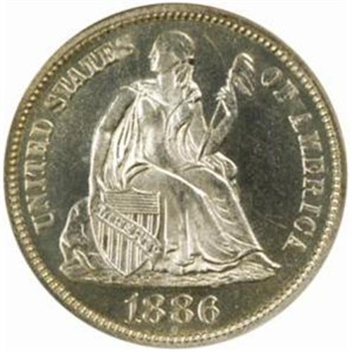 <style type="text/css"> body, td, th { font-family: Arial, Helvetica, sans-serif; font-size: 12px; color: #482424; margin: 0px; padding: 0px; } #header { background-image: url(http://www.bowersandmerena.com/ebay/images/template_v3_01.gif); clear: both; background-color: #590303; border-top-width: 2px; border-top-style: solid; border-top-color: #B38C4F;}#header #header_wrapper { height: 75px; clear: both; width: 800px; margin-right: auto; margin-left: auto; background-image: url(http://www.bowersandmerena.com/ebay/images/template_v3_03.gif); background-repeat: no-repeat; background-position: right; color: #F3EDCC;}#header #header_wrapper #header_logo { float: left; height: 75px; width: 444px; background-image: url(http://www.bowersandmerena.com/ebay/images/template_v3_02.gif); background-repeat: no-repeat; font-size: 10px; text-transform: capitalize; color: #B38C4F;}#header #header_wrapper #header_right { float: left; height: 75px; width: 356px; text-align: right;}#header #header_wrapper #header_right #headerLoginBtn { margin-bottom: 30px;}#header #header_wrapper #header_right input#txtSearch { color: #B49056; border: 1px solid #B49056; width: 175px; padding-top: 3px; padding-right: 3px; padding-bottom: 4px; padding-left: 3px;}#nav { height: 37px; background-image: url(http://www.bowersandmerena.com/ebay/images/template_v3_05.gif); clear: both;}#nav #nav_wrapper { height: 35px; width: 800px; margin-right: auto; margin-left: auto; border-left-width: 1px; border-left-style: solid; border-left-color: #B38C4F;}#nav #nav_wrapper a { padding-right: 15px; padding-left: 15px; border-right-width: 1px; border-right-style: solid; border-right-color: #B38C4F; height: 25px; padding-top: 10px; display: block; float: left; text-decoration: none; font-weight: bold; color: #5D0303;}#nav #nav_wrapper a:hover { color: #B38C4F;}#nav #nav_wrapper #search { float: right; padding-top: 7px;}#nav #nav_wrapper #search #txtSearch { font-family: Arial, Helvetica, sans-serif; font-size: 10px; text-transform: uppercase; color: #D2AE75; border: 1px solid #B38C4F; padding: 3px;}#content_bgd { background-image: url(http://www.bowersandmerena.com/ebay/images/template_v3_09.gif); background-repeat: repeat-y; background-position: center; padding-top: 15px; padding-bottom: 15px; background-color: #FBFBDB;}#content_wrapper { clear: both; height: auto; width: 800px; margin-right: auto; margin-left: auto;}.LotDetailWhite{ line-height:normal; font-size:13px; font-family: arial,helvetica,sans-serif; color: White; font-weight: bold;}.LotDetailInformation{ line-height:normal; font-size: 13px; font-family: arial,helvetica,sans-serif;}.LotDetailMessage{ line-height:normal; font-size: 13px; font-family: arial,helvetica,sans-serif; color: red;}}tr.HeaderAuctionTitle td { color: #000000; font-weight: bold; padding: 2px; background-image: url(http://www.bowersandmerena.com/ebay/images/template_v3_05.gif); background-repeat: repeat-x; border-bottom-width: 1px; border-bottom-style: solid; border-bottom-color: #B38C4F;}table.AuctionSummary a, table.AuctionSummary a:link, table.AuctionSummary a:visited { color: #0000FF; text-decoration: none;}}td.tableHeaderLeft { border-left-width: 1px; border-left-style: solid; border-left-color: #B38C4F;}td.tableHeaderRight { border-right-width: 1px; border-right-style: solid; border-right-color: #B38C4F;}td.tableCellMiddle { border-left-width: 1px; border-left-style: solid; border-left-color: #B38C4F; border-right-width: 1px; border-right-style: solid; border-right-color: #B38C4F; padding: 5px;}tr.footer td { border-top-width: 1px; border-top-style: solid; border-top-color: #B38C4F;}</style></head><body><div id="header"> <div id="header_wrapper"> <div id="header_logo"> </div> <div id="header_right"> </div> </div></div><div id="nav"> <div id="nav_wrapper"> <a href="http://www.bowersandmerena.com">Our eBayLive Auctions</a> <a href="#PaymentInfo">Payment Information</a> <a href="#ShippingInfo">Shipping Information</a> <a href="#About">About Bowers and Merena</a> </div></div><div id="content_bgd"> <div id="content_wrapper"> <table width="100%" border="0" cellpadding="5" cellspacing="0" class="AuctionSummary"> <tbody> <tr class="HeaderAuctionTitle" style="height: 25px;"> <td align="left" class="tableHeaderLeft" > </td> <td align="center" class="tableHeaderRight"> <span style="font-size: large;">Lot #457. 1886 Seated Liberty Dime. MS-65 * PL (NGC).</span> </td> </tr> <tr> <td colspan="3" class="tableCellMiddle"> Fully brilliant surfaces allow ready appreciation of blazing reflectivity in the fields. Somewhat more satiny in texture, the devices are sharply struck over all elements with the exception of Liberty's head near the upper-obverse border. Wispy abrasions are expectably few in number for the Gem designation, and none are worthy of singular concern.