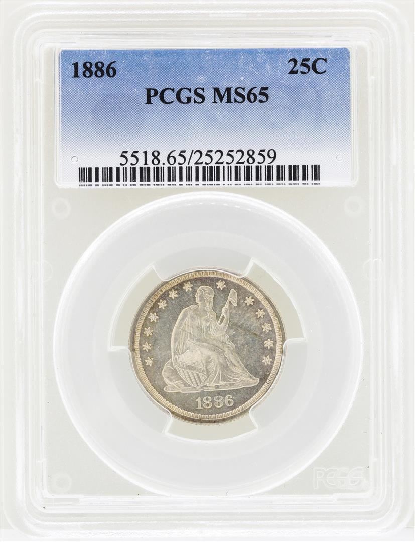 One 1886 Seated Liberty Quarter Coin PCGS MS65. PCGS Graded.