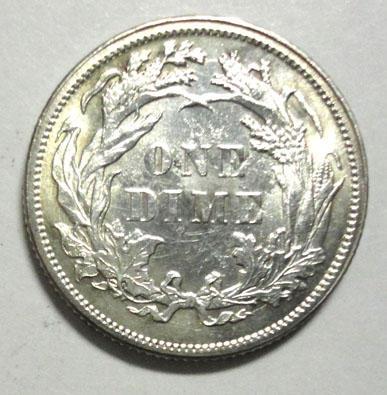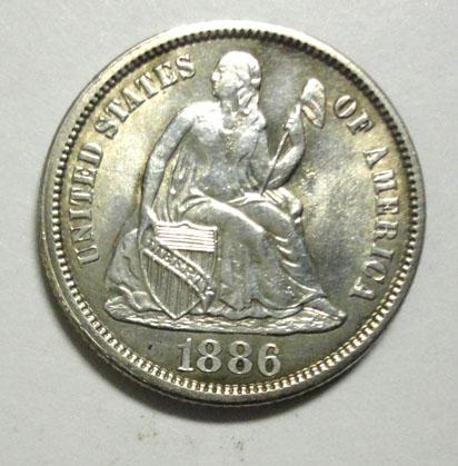 1886 Seated dime with as struck planchet flaws. MS62