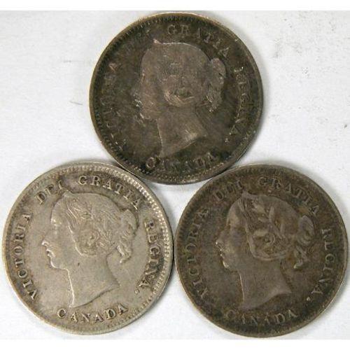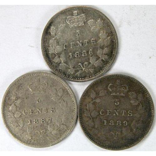 1886 Small 6, 1887 and 1889. Three pale and lightly toned pieces, all F-VF or better