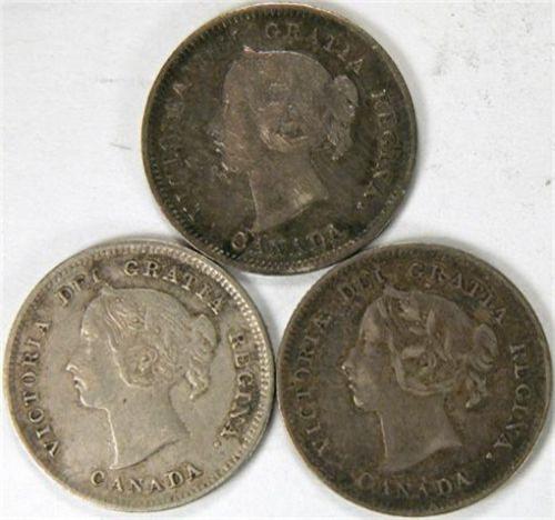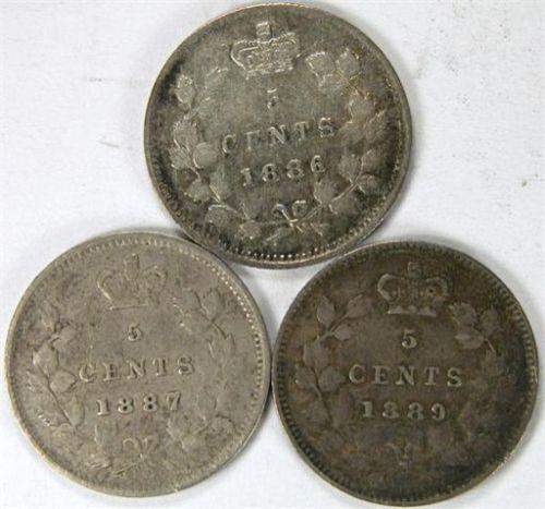 Canada Five Cents 1886 Small 6, 1887 and 1889, all VF or better. Light toned to light-medium toned
