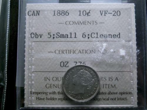 1886 Small 6 Obverse 5 ICCS VF20 silver gray tone, sharp! Lightly cleaned.