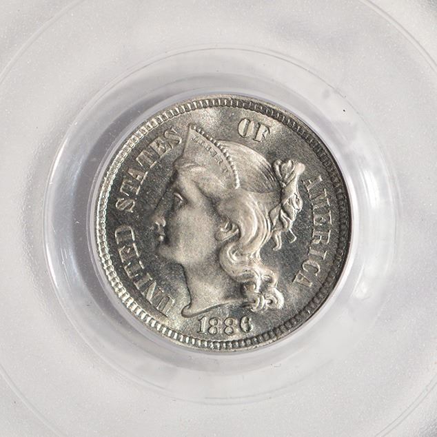 One 1886 Three Cent Nickel PCGS PR66 CAC.